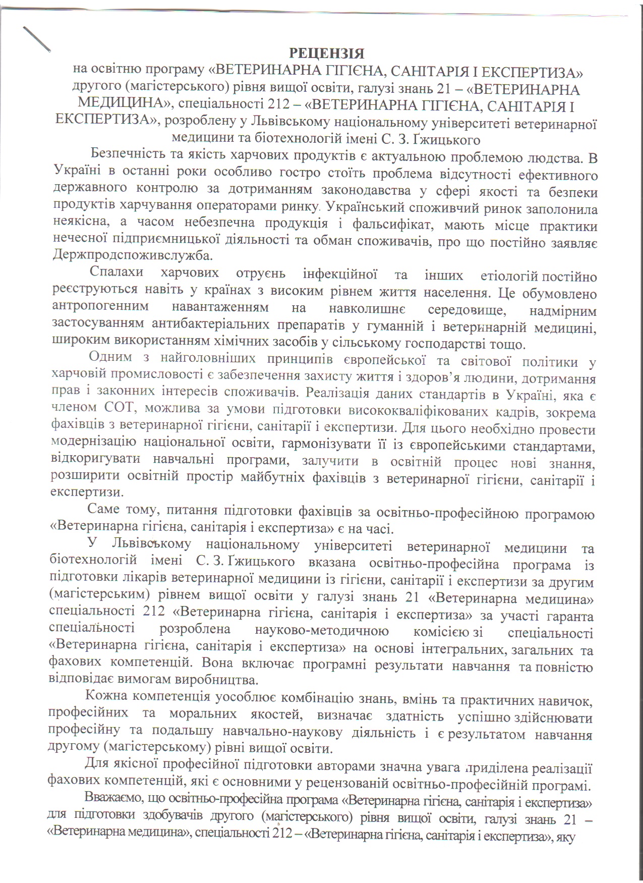 | 30. | Магістр | Ветеринарна гігієна, санітарія і експертиза |