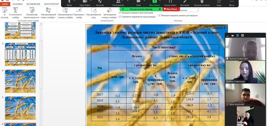 20 грудня 2022 року на кафедрі економіки підприємства, інновацій та дорадництва в АПК імені І.В. Поповича відбувся захист магістерських кваліфікаційних робіт спеціальності 051 «Економіка» ОП «Економіка довкілля і природних ресурсів». Попередньо дані дослідження були перевірені системою антиплагіат.