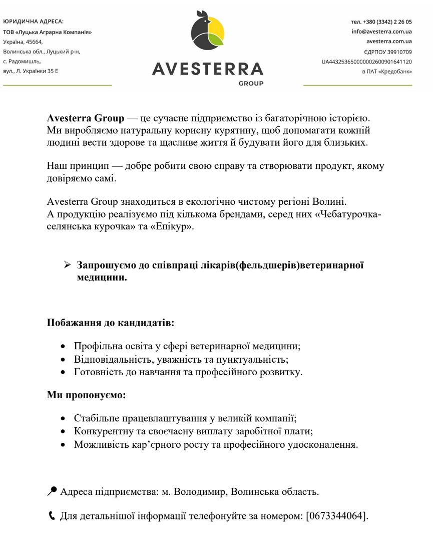Вакансія від 06_02_2024 Пропозиція для студентів і випускників ОП 181"Ветеринарна медицина