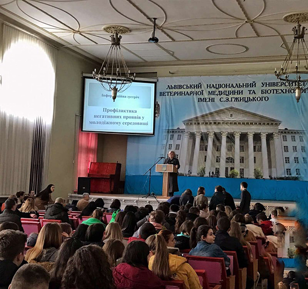 27 лютого та 3 березня з ініціативи та організації Відділу соціально-культурного розвитку університету відбулася інформаційна зустріч із студентами та викладачами університету з питання розвитку особистості та здорового способу життя. У зустрічі взяли участь студентський капелан університету о. Роман Довгань, представники блогу Української педіатричної платформи, інспектор з ювенальної превенції, Личаківського відділу поліції Головного управління Національної поліції у Львівській області старший лейтенант поліції Оксана Сірант.